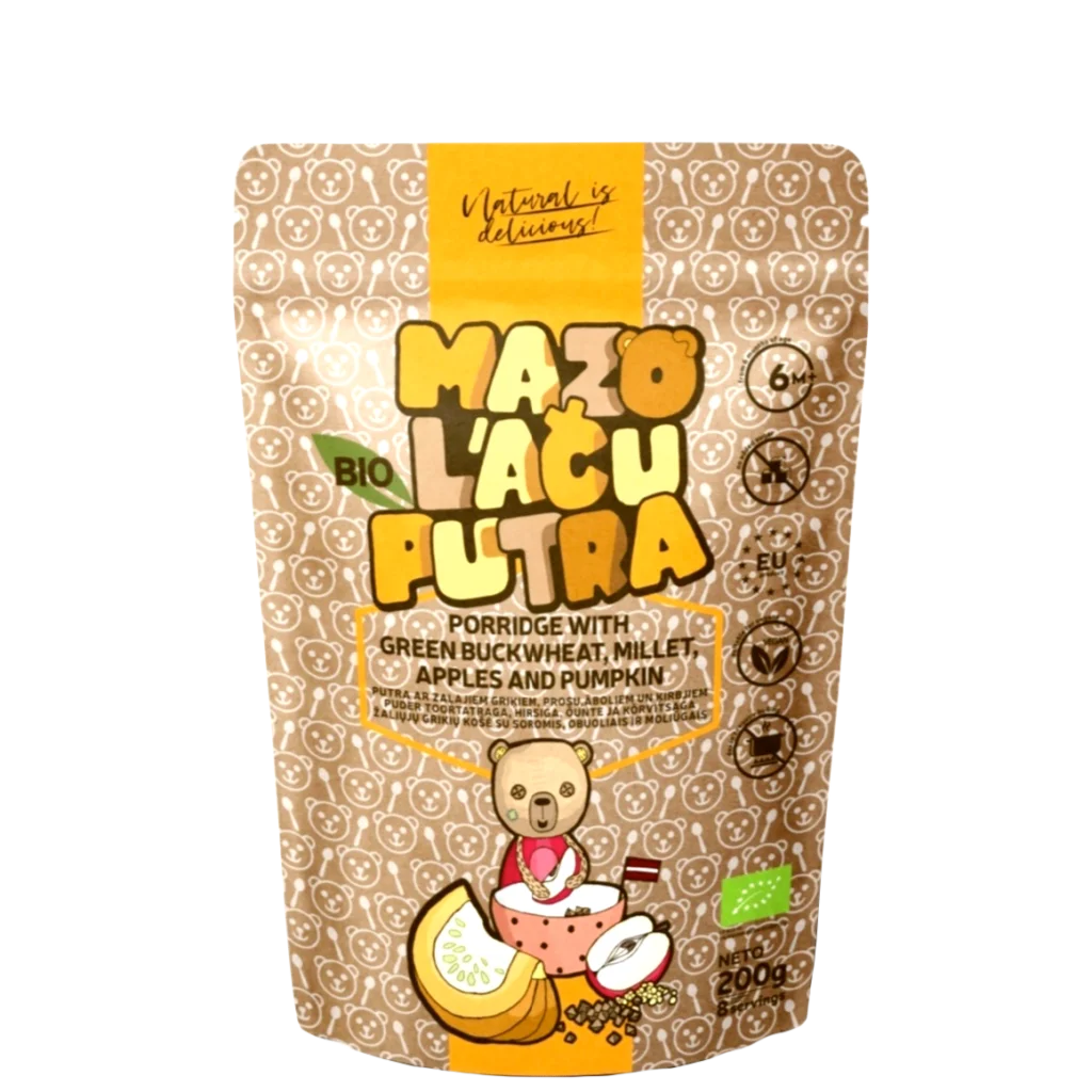 BIO “Mazo lāču putra”ar griķiem, āboliem, prosu un ķirbi 200 gr., 6m+